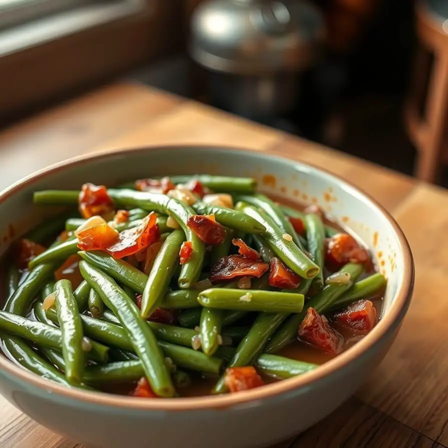 I grew up in a small Southern town where Sunday dinners were practically a family event. My grandmother would spend the morning in her apron, humming an old gospel tune while pots simmered away on the stove. One of those pots always held her famous Southern green beans — slow-cooked with onions, a touch of garlic, and smoky bacon that perfumed the whole kitchen.