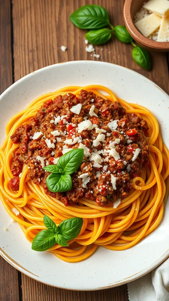 Spaghetti Bolognese is a timeless favorite that brings comfort to any dinner table. The rich meat sauce, simmered with tomatoes and herbs, pairs perfectly with al dente spaghetti. Top it off with fresh basil and grated cheese for a meal everyone will love!