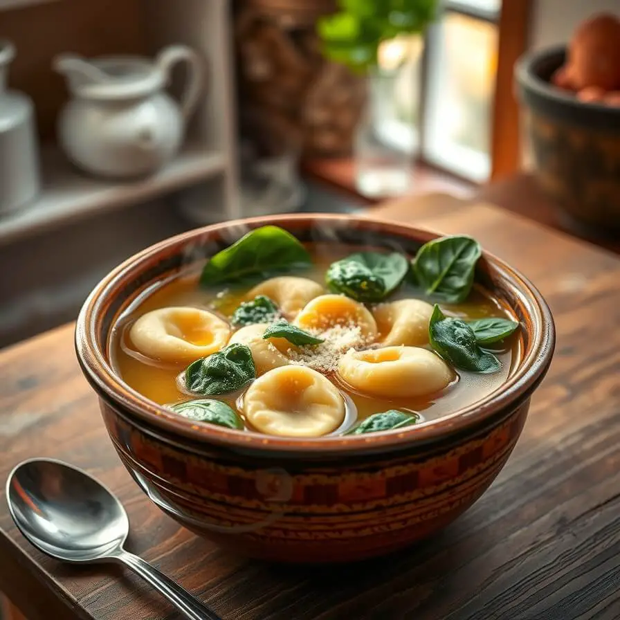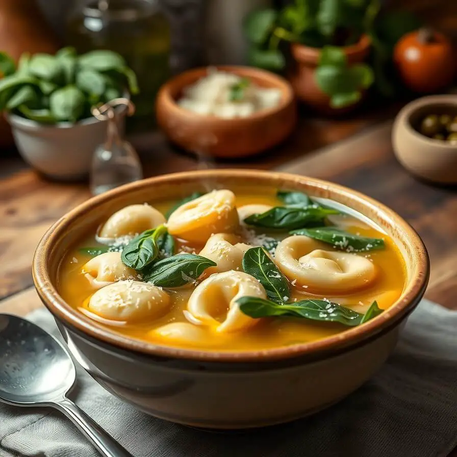 Serve the soup in deep, wide bowls to allow the tortellini to float beautifully on top of the rich broth. I love adding a few fresh spinach leaves just before serving to maintain their vibrant green color. A generous sprinkle of freshly grated Parmesan cheese adds both flavor and a touch of elegance.