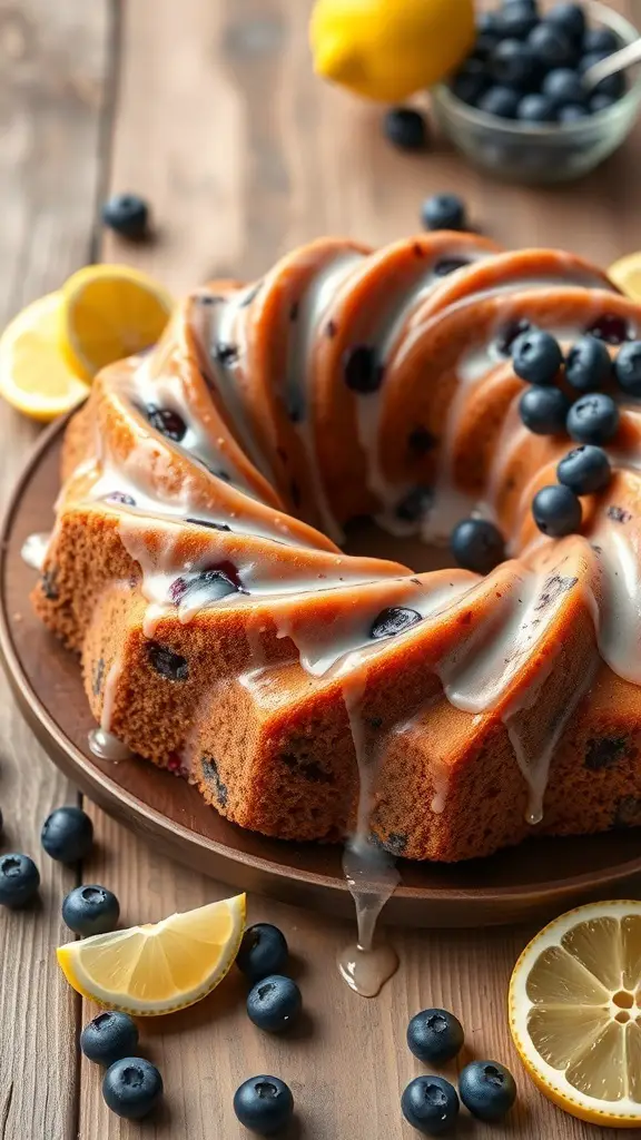 This Lemon Blueberry Bundt Cake is a delightful treat for spring. The cake features a beautiful golden-brown exterior with a moist, fluffy interior. The blueberries add a burst of flavor, while the lemon glaze drizzled on top gives it a refreshing zing.