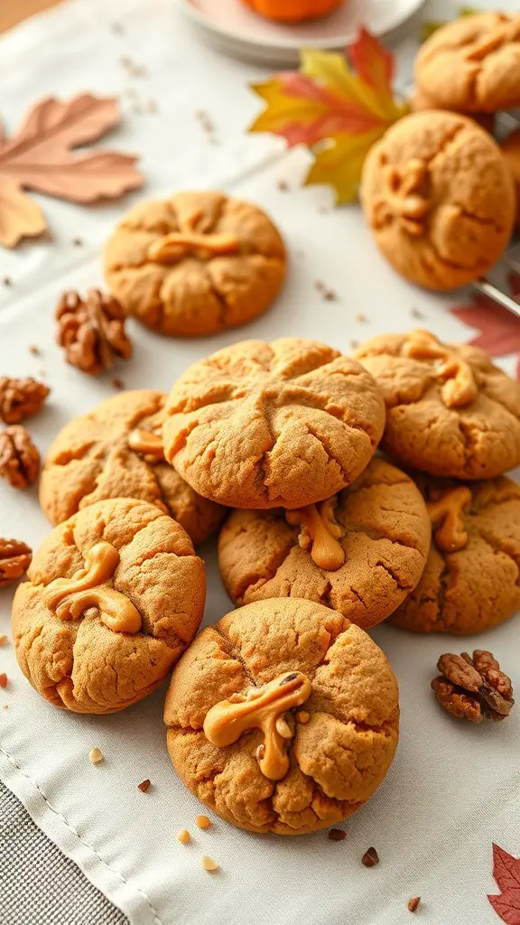 These Pumpkin Spice Protein Bars are a delightful treat that fits perfectly into a sugar-free lifestyle. The image shows a tempting display of golden-brown bars, topped with pumpkin seeds, resting on a wooden board. The warm hues of the bars complement the vibrant orange and white pumpkins in the background, adding a cozy autumn feel.