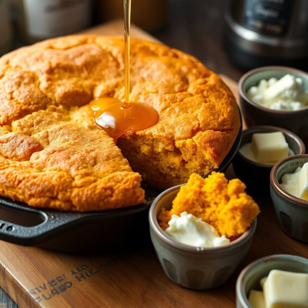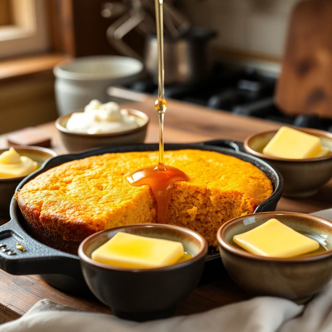 If you’re serving it for a holiday dinner, cut it into neat squares and arrange them in a bread basket lined with a clean kitchen towel to keep them warm. A drizzle of honey right before serving adds a glossy finish and a hint of sweetness that catches the light. For a brunch spread, try cutting the cornbread into small wedges and serving with whipped honey butter or cinnamon butter for a softer, more decadent bite.