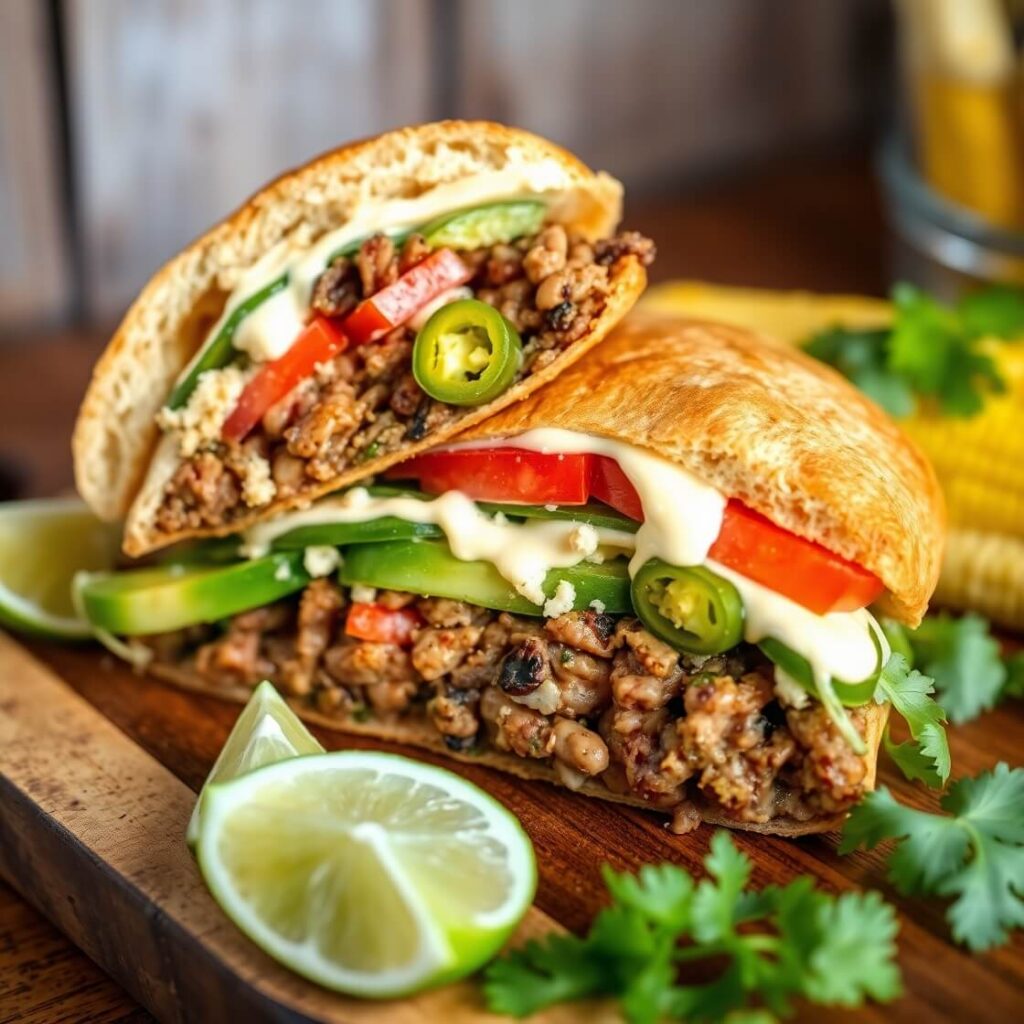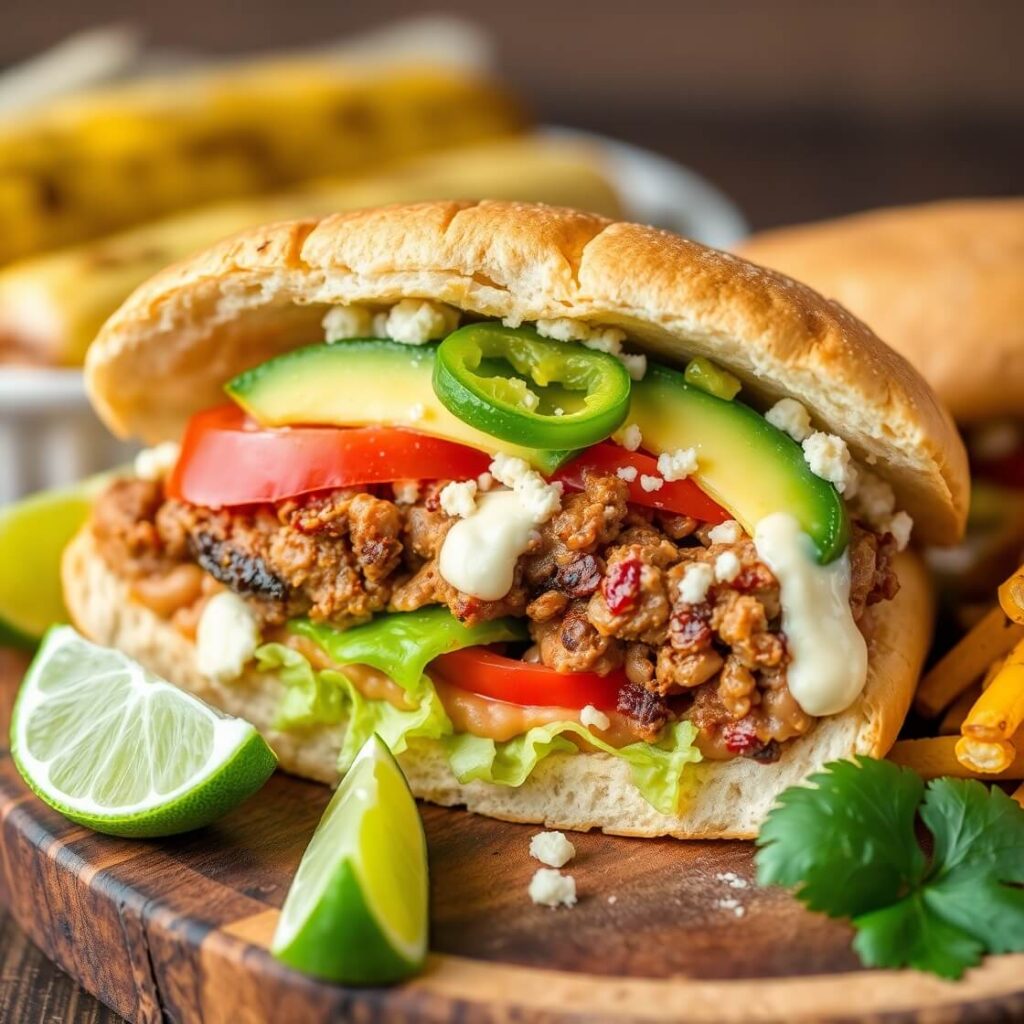 For a sit-down meal, cut the sandwich in half and serve on a rustic wooden board or a colorful ceramic plate, surrounded by lime wedges, a sprinkle of fresh cilantro, and a few pickled jalapeños on the side.