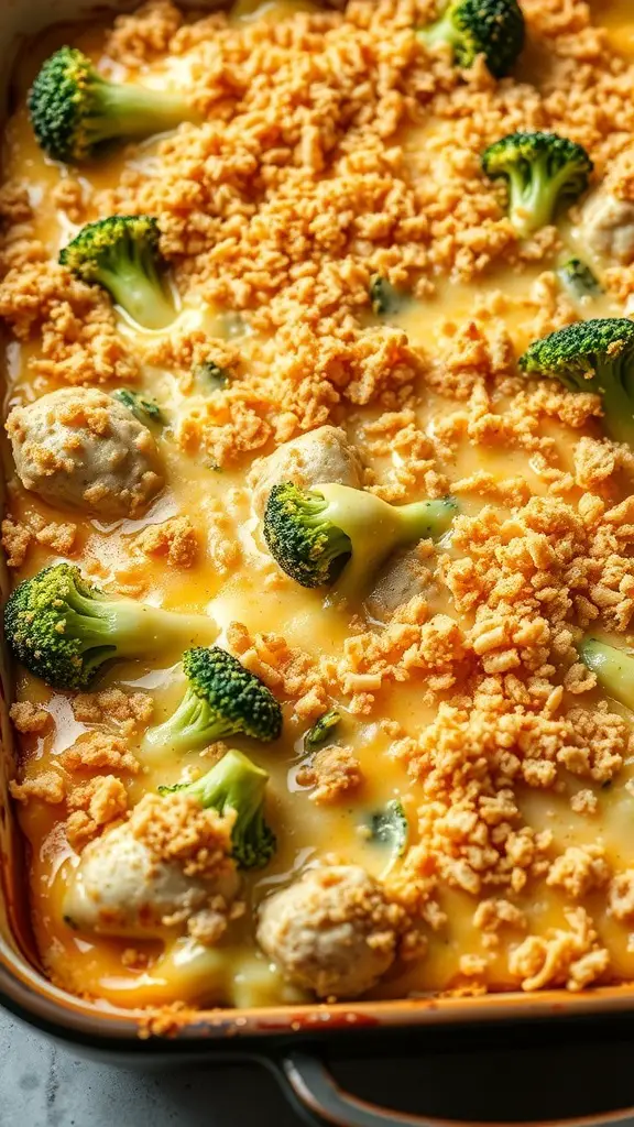 The casserole is topped with crumbled blue cheese, adding a tangy flavor that pairs well with the heat of the buffalo sauce. The crunchy texture from the green onions gives it an extra layer of freshness. This dish is not just tasty; it’s also easy to prepare, making it a great choice for busy weeknights.