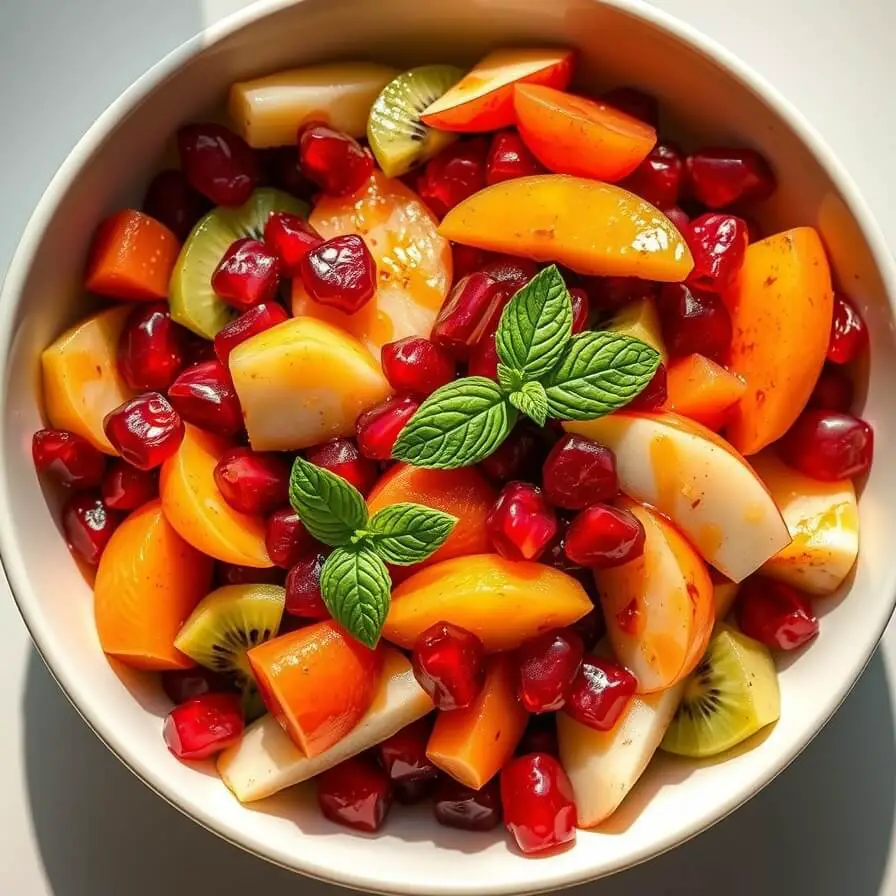 This recipe became a small tradition in our house. I love how the fruits look like little jewels—deep red, gold, and creamy white—almost too pretty to eat. And the best part is how simple it is. No fancy steps, no complicated prep, just good seasonal fruit with a light honey-citrus dressing that makes everything come alive.