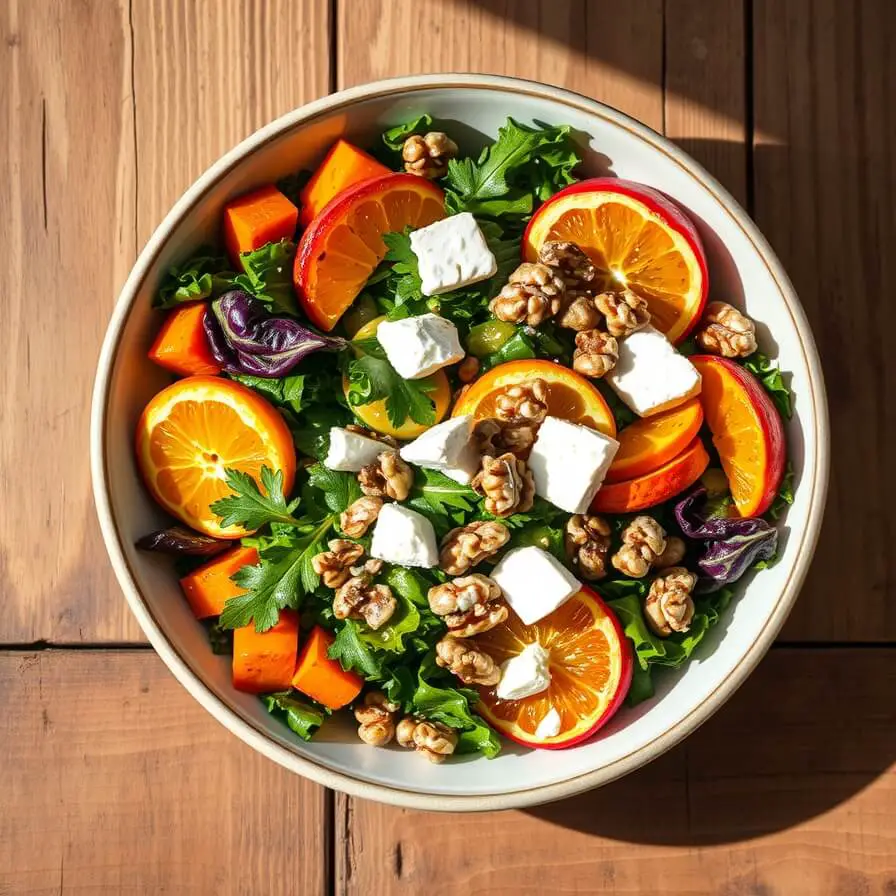 What makes this winter salad truly special is its balance. Most salads are crisp, fresh, and summery, but winter produce has a completely different personality—earthy, sweet, and grounding. This recipe brings all those elements together by pairing raw crunch with roasted warmth. You get caramelized edges from roasted carrots and sweet potatoes, the juicy brightness of oranges or blood oranges, and a creamy element from nuts, cheese, or avocado.